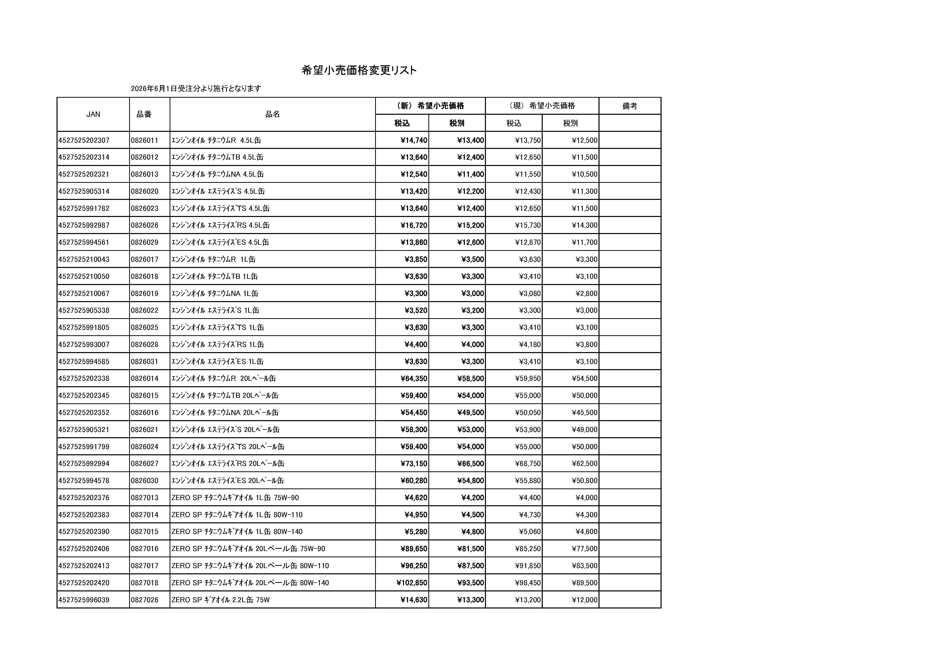 この度弊社では、2026年6月1日より「ZERO SP オイルシリーズ」の一部商品につきまして価格改定をさせていただくこととなりました。
